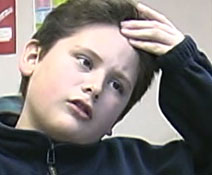 This student developed a headache from straining to see the text on the page clearly and accurately. He demonstrates symptoms from Scotopic Sensitivity Syndrome, a sensitivity to light which causes distortions to print on the page.