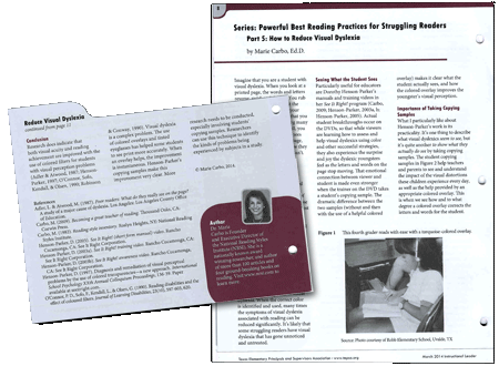"Color works really well with about half of the students with dyslexia" reported Vicky Wehner, the Coordinator of Disability Services at Truman State University in Missouri.